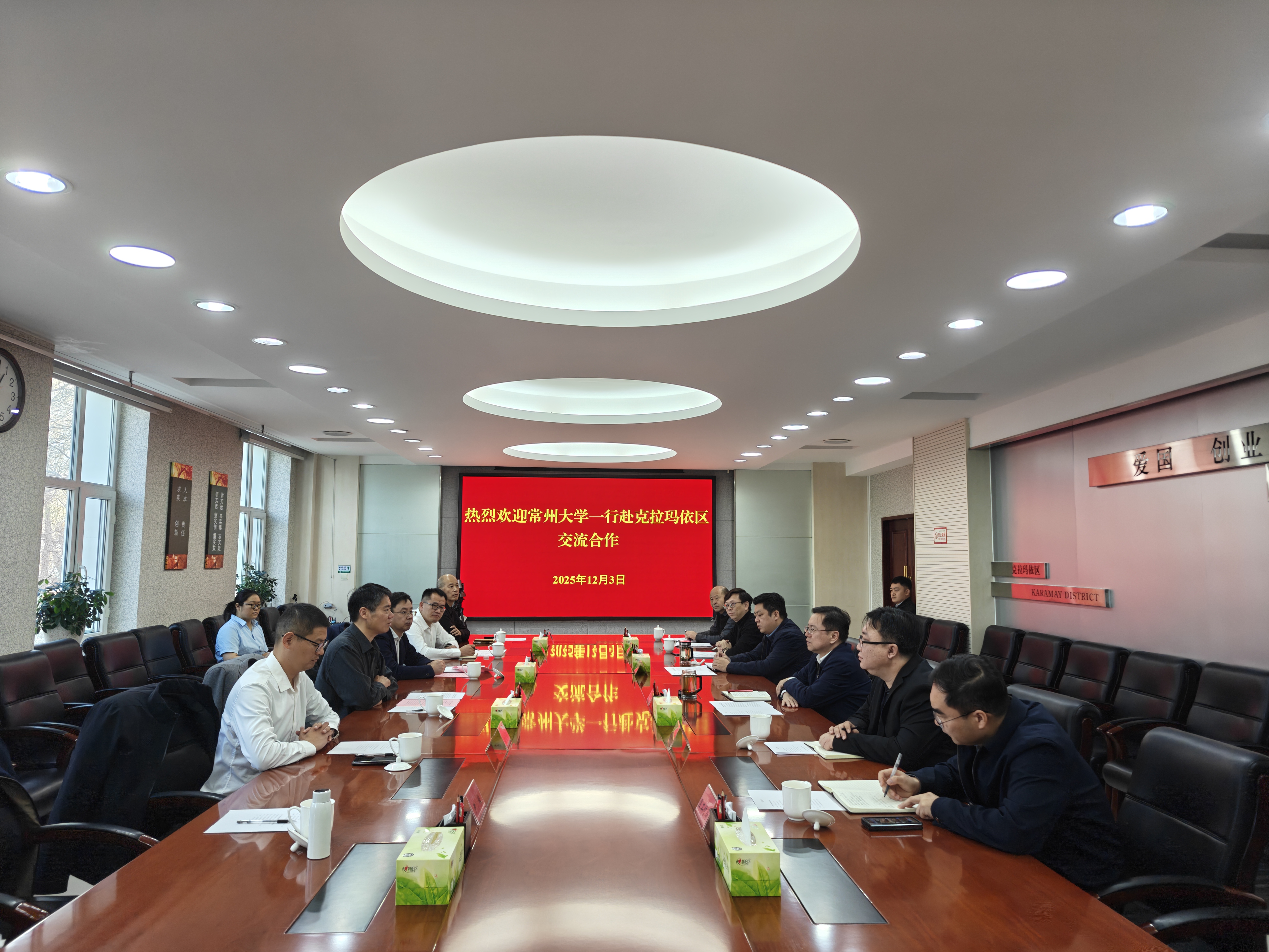 在克拉玛依区人民政府座谈期间,双方总结回顾了在平台共建、技术转移、企业服务、人才培养等方面取得的阶段性成果。克拉玛依市委常委、区委书记张煜指出,常州大学的学科专业布局与克拉玛依以石油石化为主导的“一主多元”产业战略契合度高、互补性强,双方应把握机遇、乘势而上,建立更加紧密有效的合作推进机制,将共识转化为具体行动,将意向落实为合作项目。陈海群表示,学校将进一步加强克拉玛依常大技术转移中心建设,搭建校企对接桥梁,健全服务保障机制,坚持务实做事、注重实效,确保各项合作任务落到实处、取得实效,力争早日形成一批合作成果。下一步双方将重点在提升产学研合作实效、加速科技成果转化落地、深化多层次人才培养与交流、拓展资源汇聚渠道等四方面深化合作。