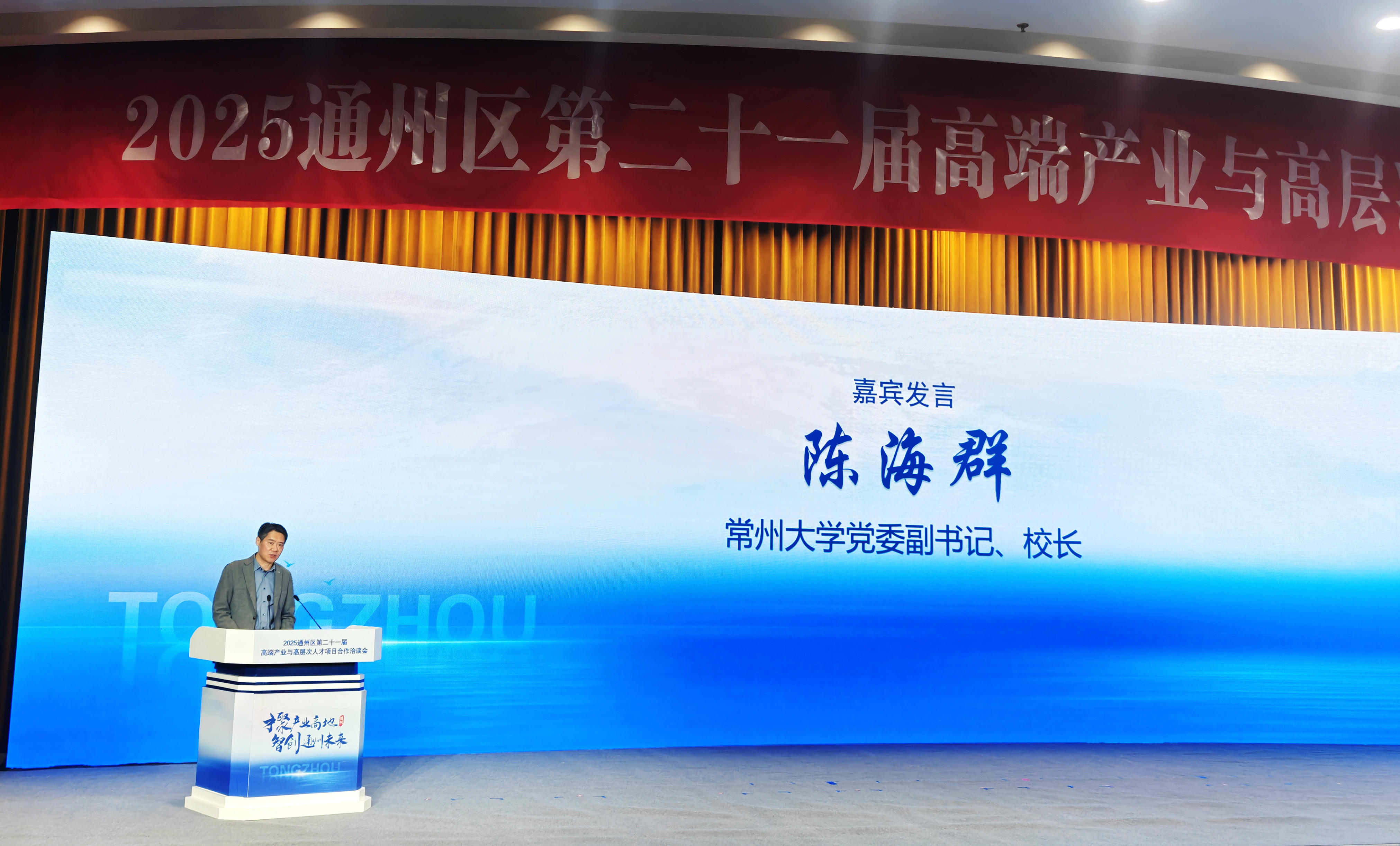 12月6日,2025通州区第二十一届高端产业与高层次人才项目合作洽谈会开幕。200多位省内外高校院所领导专家、海内外客商、高层次创新创业人才齐聚通州,共谋合作、共话发展。校党委副书记、校长陈海群应邀出席开幕式并作交流发言。
